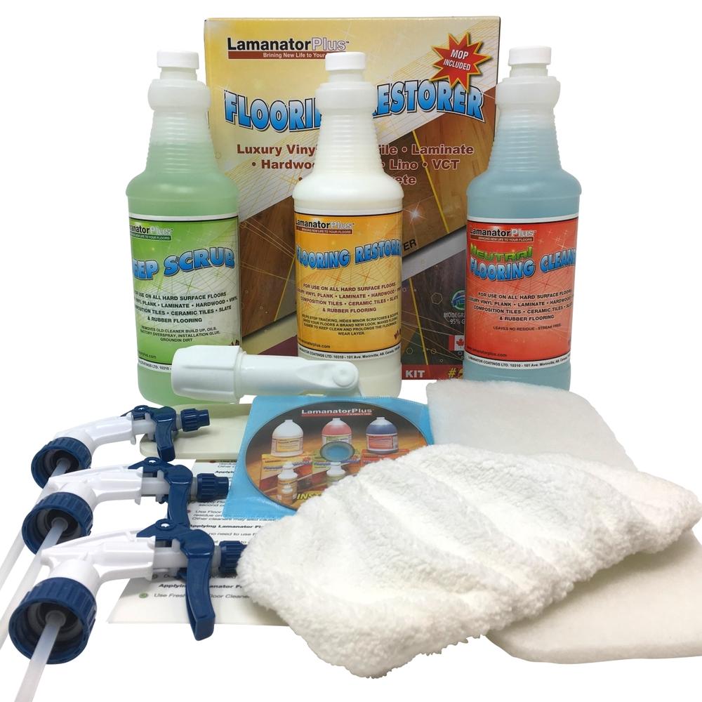 Lamanator Plus™ is available in ready to use kits which contain everything you need to do the process. They include the product, our two in one mop kit, spray triggers and an instructional dvd.