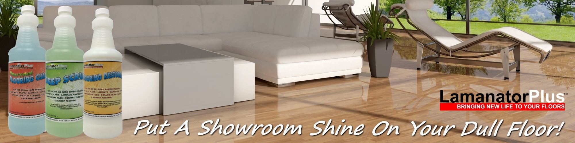 Lamanator Plus™ is specially formulated to thoroughly Clean, Restore, Shine, Protect & Maintain Laminate Flooring. It also works great on Vinyl, Tile, Wood & other hard surfaces. It puts a long lasting protective shine on the floor and helps eliminate footprint tracking and streaking. It's About Time!